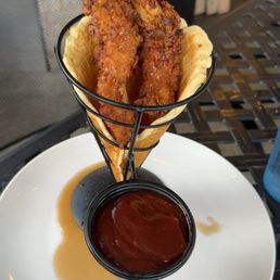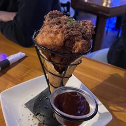 Walked in for an early dinner on a Friday. Place was about three quarters full. Might get a bit crowded during the usual rush, so be aware. Sign said seat yourself so we did. Only took a couple or three minutes before menus were delivered and drinks were ordered. Started off with a pretzel. It was huge and served right - fresh, hot and on a hanger. Delivered by one of the owners with a smile. Good pretzel, good sauces. I have a special weakness for deep fried food, so I had to try the deep fried Monte Cristo with the strawberry rhubarb compote. It did not disappoint. It seems to be a signature dish. Not sure where the inspiration for that came from, but it would not be out of place at the Texas State Fair (where they deep fry anything and everything). Decor is...neighborhood bar? They have a cash discount, so bring some. Not sure how I have overlooked this place until now.